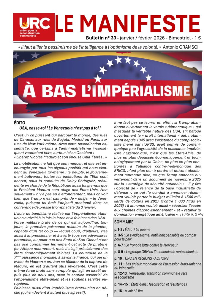 L’URC appelle l’ensemble des forces anti-impérialistes à se mobiliser activement, à renforcer la solidarité internationale et à engager des actions concrètes de soutien à la Révolution et au peuple cubain face à l’agression impérialiste.